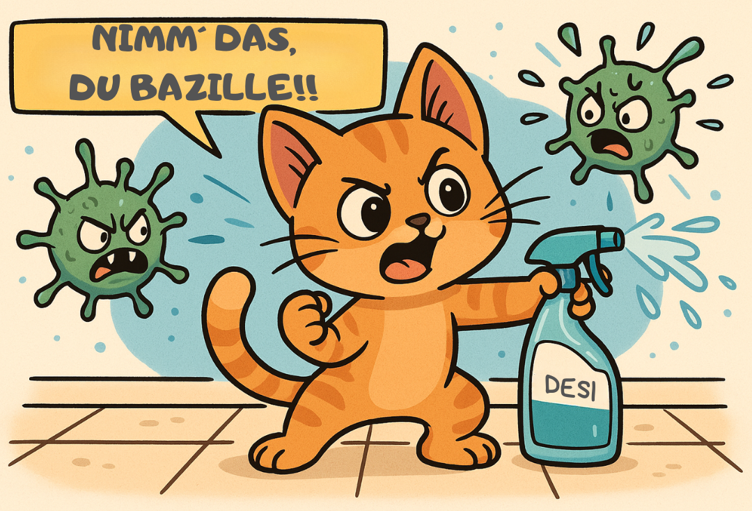 Die lieben Zweibeiner hier schrubben und putzen ja schon fast rund um die Uhr, damit’s bei uns sauber, gesund und schnurrig bleibt – aber langsam wird’s eng im Putzschrank. Ob Flächen- oder Händedesinfektion: Wir brauchen dringend Nachschub! Denn mal ehrlich… ewig einhalten können wir das große und kleine Geschäft nicht. Und wir sind viele. Also richtig viele.