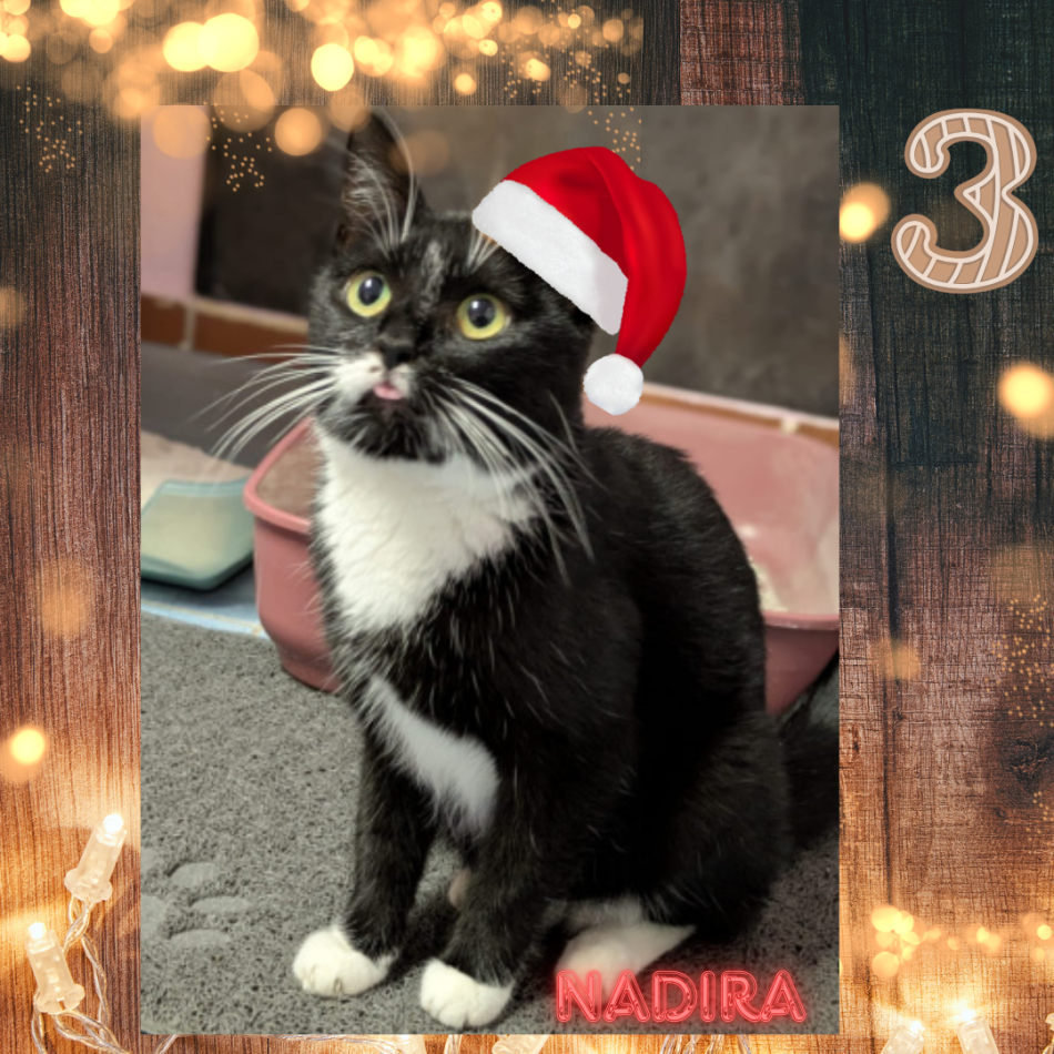 Hinter dem dritten Türchen versteckt sich heute Nadira, eine bildhübsche Katzendame mit ganz besonderem Charme. Sie gehört zu den Katzen, die man nicht mit Aufdringlichkeit erobert – sondern mit Geduld, Ruhe und liebevollem Verständnis.