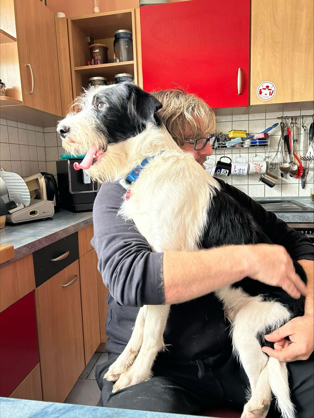 Dass ich mich dann bei meiner neuen Familie eingelebt hatte, ging ganz schnell, seit der ersten Nacht schlafe ich mit im Bett. Ich hab ich mich erst einmal um Sara und meine neue Familie gekümmert. Die waren ganz schön traurig, weil Sara‘s Freund Printz Anfang des Jahres über die Regenbogenbrücke gegangen ist. Da ich ja noch ein tollpatschiger Welpe war, hab ich glaube alle im Sturm erobert und alle mit meiner Art getröstet.