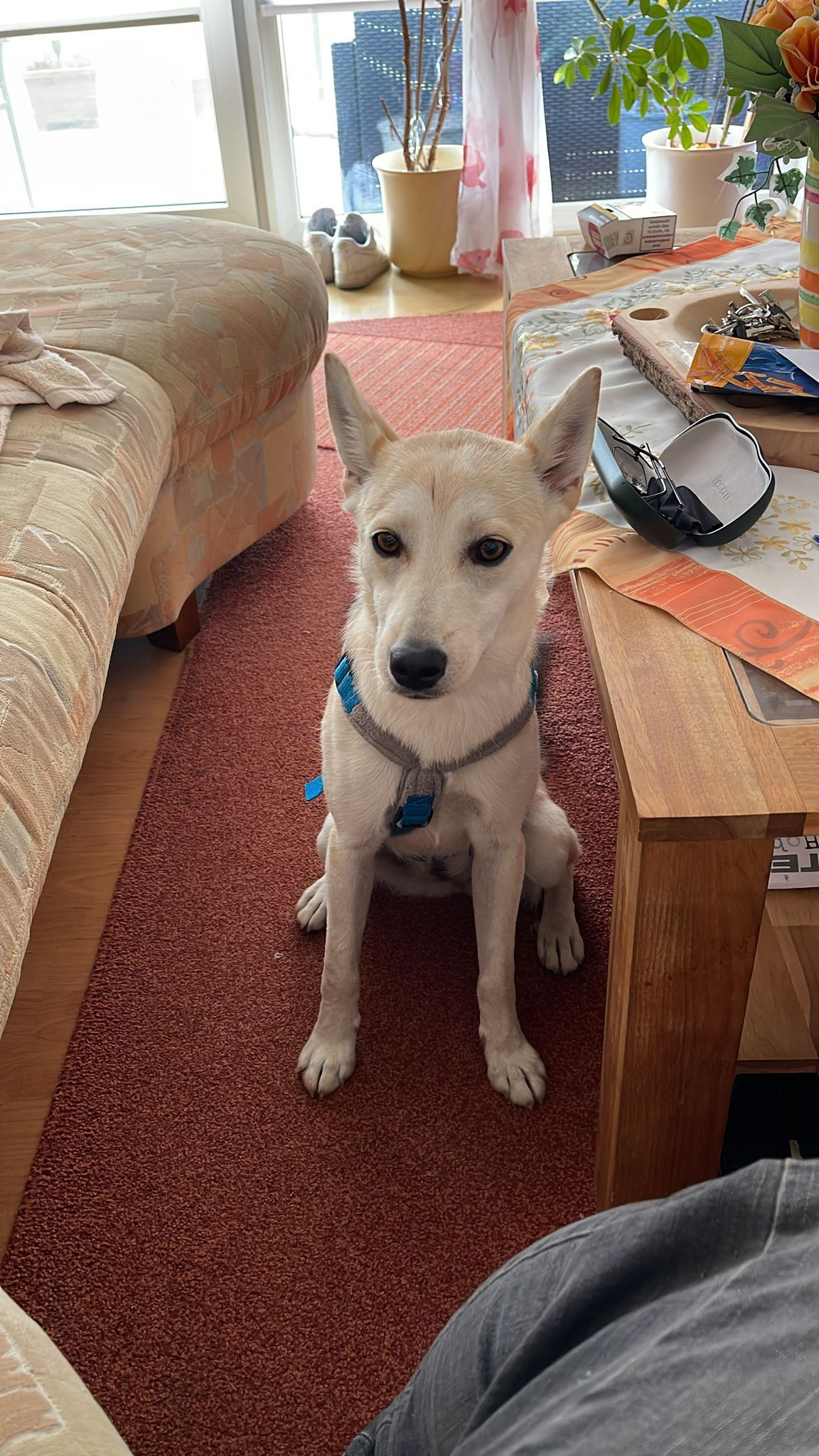 Ich bekomme richtig leckeres Essen und Leckerlies, besonders wenn ich toll mitarbeite, denn ich lerne noch ganz viel. Wir sind immer viel spazieren am Meer und auf dem Campingplatz. Ich habe meine Leute so lieb und sie mich auch sehr, ich folge denen auf Schritt und Tritt. Ich bin so froh, dass wir uns gefunden haben. Ich melde mich bald wieder, denn meine Familie hat mir einen schönen leckeren großen Knochen mitgebracht! Ein paar Fotos sind anbei, bald folgen noch welche.