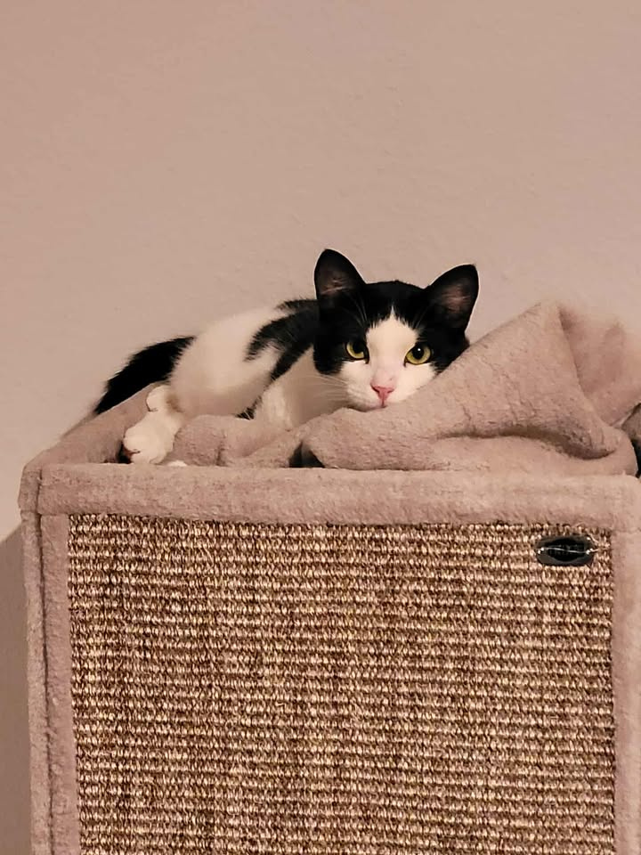 hier sind ein paar Bilder von Hook! Hook ist ein verspielter, neugieriger Kater. Am liebsten mag er einen Sticki. Nach anfänglicher Scheu sucht Hook jetzt jeden Tag unsere Nähe und Gesellschaft.
