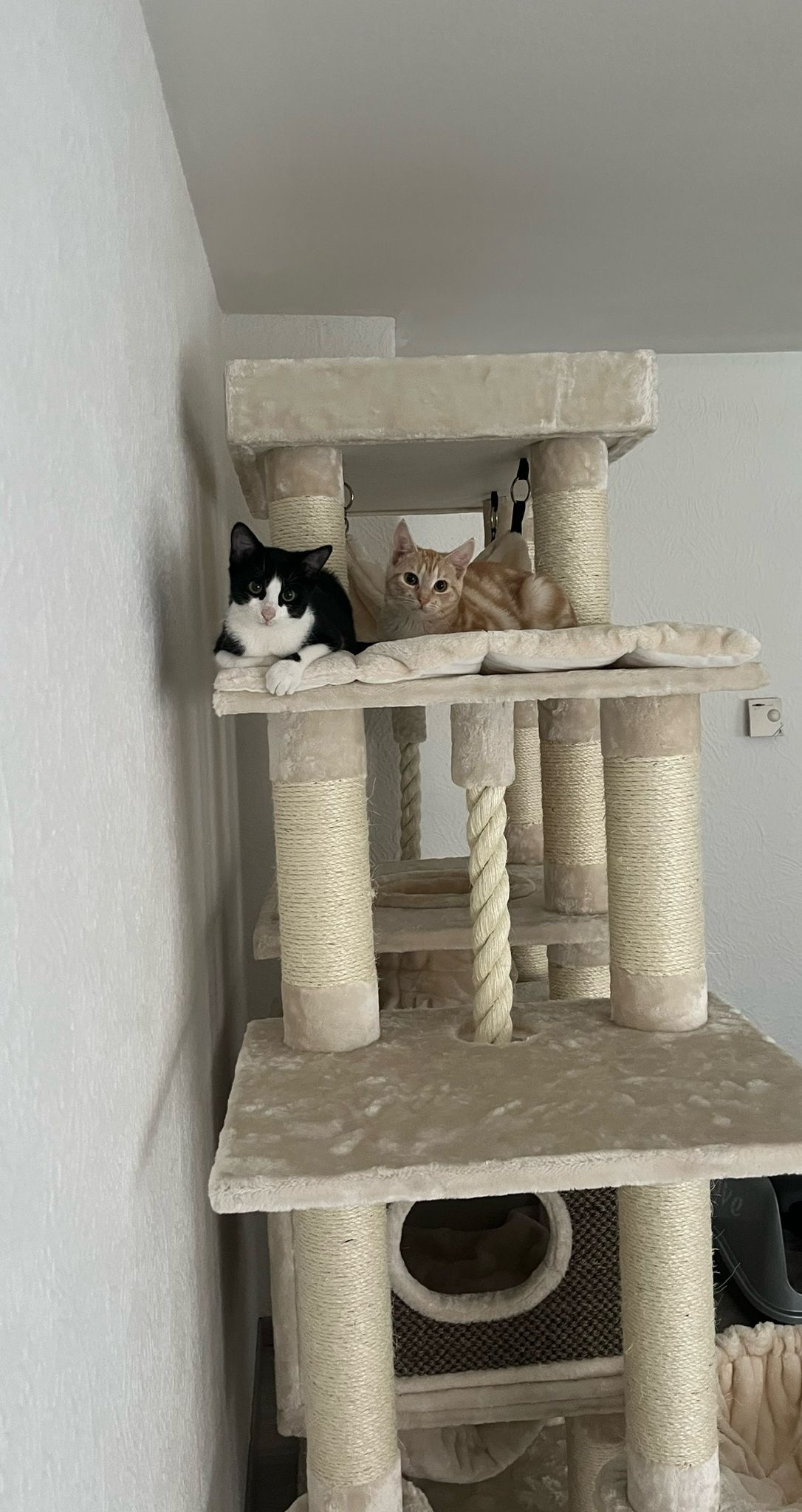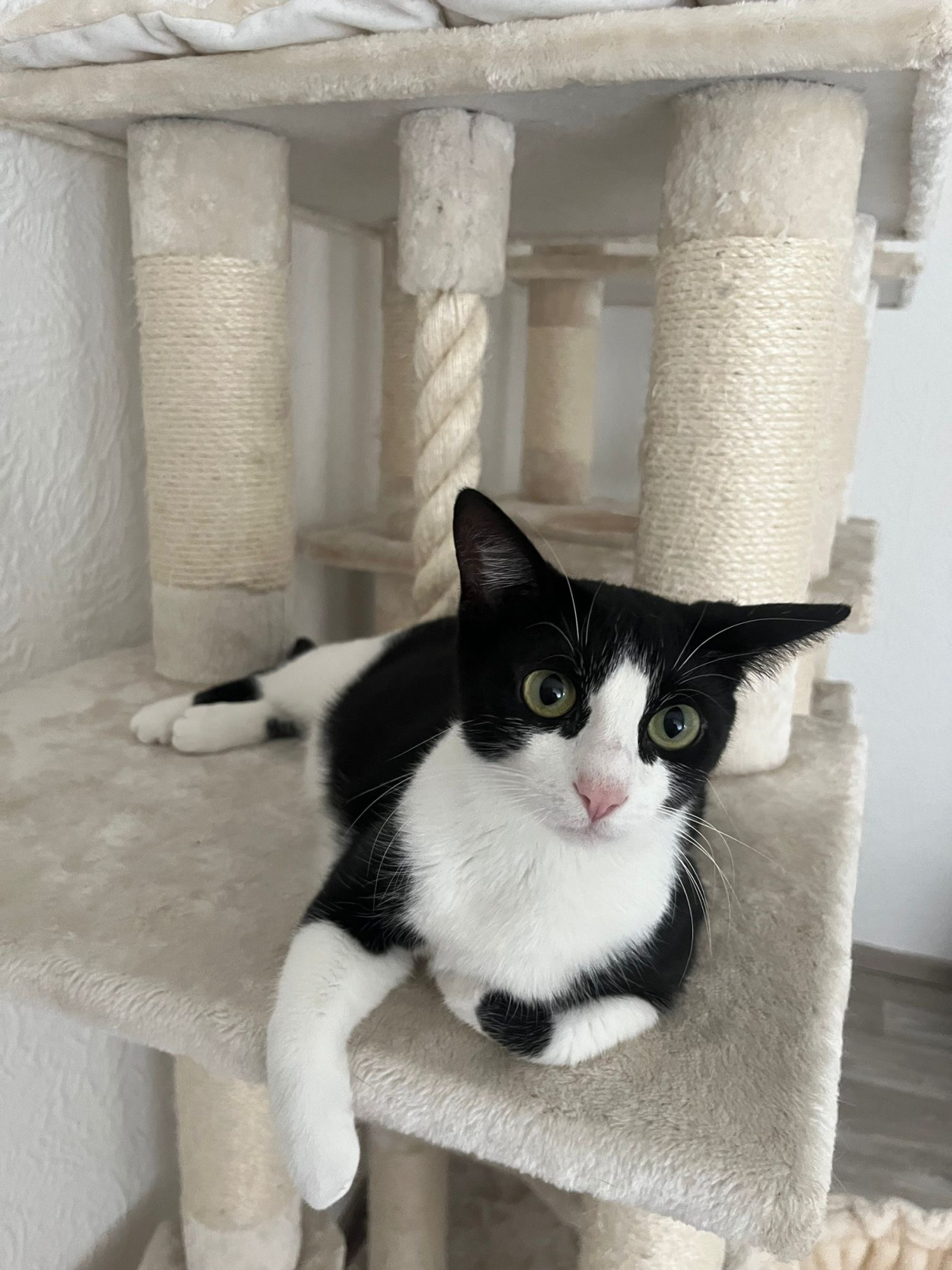 Zazu war am Anfang sehr schüchtern, mittlerweile ist er im gewohnten Umfeld ein richtig verschmuster und verspielter großer Kater mit einem Herz aus Gold geworden. Kaum sieht er seine Menschen, möchte er gestreichelt werden. Bei ungewöhnlichen Situationen oder Geräuschen ist er immer noch sehr schüchtern. Trixi war schon immer sehr sehr menschenbezogen, das ist sie immer noch. Sie ist sehr mutig, aber hat ihren eigenen Dickkopf. Beide sind, jeder auf seine eigene Art, wunderbare große Katzen geworden!”
