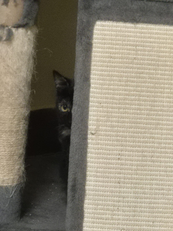 Ein, wie ich finde, bildhübscher, junger Kater, der im Tierheim meistens so tut, als wäre er ein Mythos: Selten gesehen, eine vorbeihuschende, fließende Bewegung oder gelegentlich einfach auch nur ein Paar leuchtende Augen, die aus der Katzenhöhle funkeln. Aber keine Sorge – ich existiere wirklich. Ich bin nur… sagen wir mal… gerne unsichtbar.